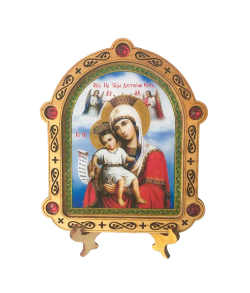 Icoana birou cu suport, realizată cu atenție la detalii, potrivită pentru casă sau pentru a fi oferită celor dragi.