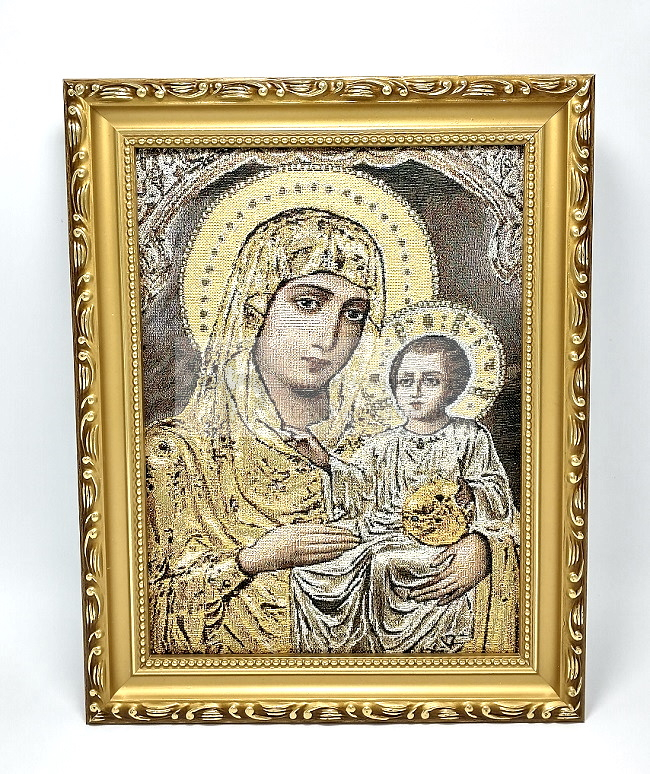 Icoana in Vesmant cu Maica Domnului Ierusalnita, realizată cu atenție la detalii, potrivită pentru casă sau pentru a fi oferită celor dragi.