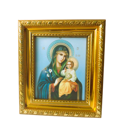 Icoana Maicii crinul in rama – un simbol al credinței, potrivit pentru binecuvântarea locuinței.