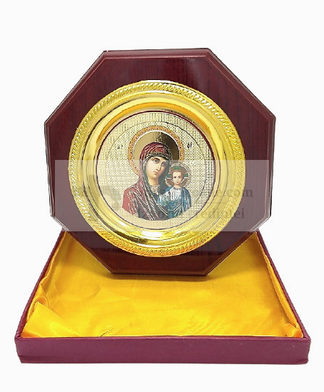 Icoana octogonala Maica Domnului cu Pruncul, realizată cu atenție la detalii, potrivită pentru casă sau pentru a fi oferită celor dragi.